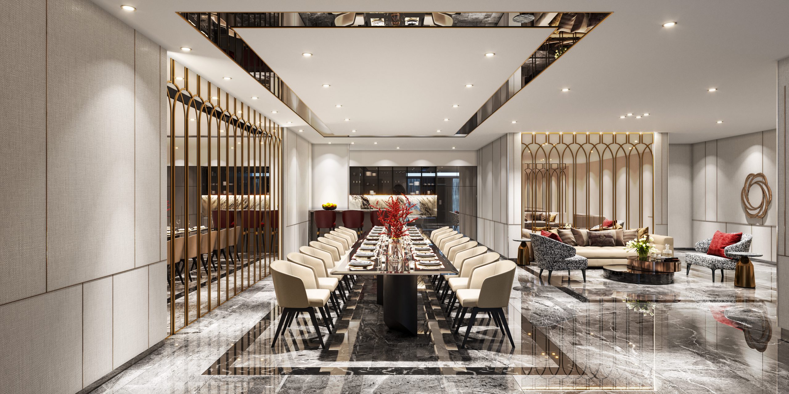 Fine Dining Lounge: Không gian tiệc tối sang trọng, nơi tiếp đón đối tác và bạn bè trong sự riêng tư tuyệt đối.