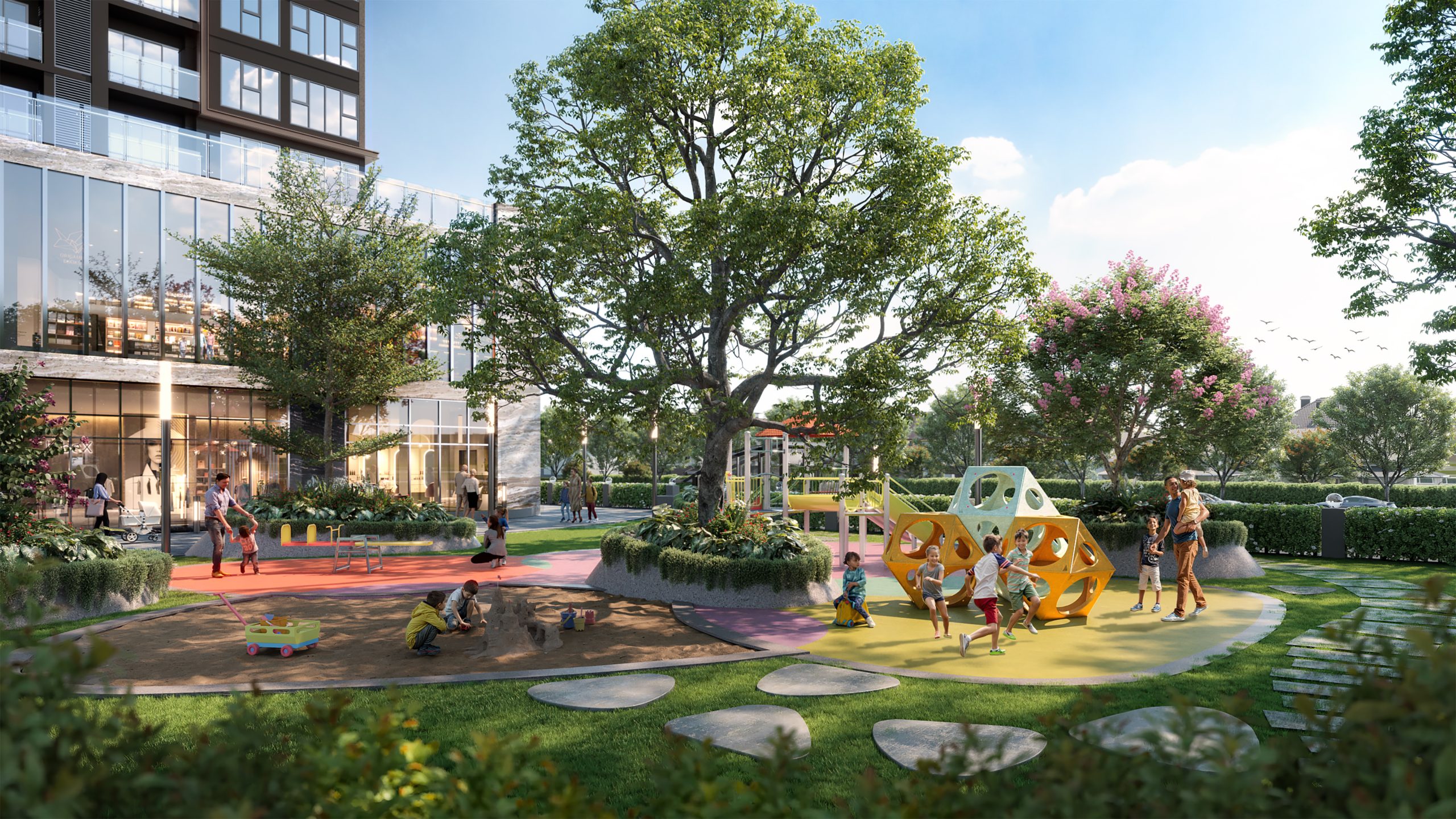 Thiên đường xanh đa tầng: Xóa nhỏa ranh giới giữa kiến trúc và thiên nhiên, The Privé phủ xanh không gian sống bằng chuỗi tiện ích trải dài từ Tầng trệt lên đến Tầng 2, 3 và 4. Mỗi tòa tháp sở hữu những khoảng trời riêng tư, trong khi khối đế (Podium) là sân khấu chung của những trải nghiệm đặc quyền dành riêng cho cộng đồng tinh hoa.